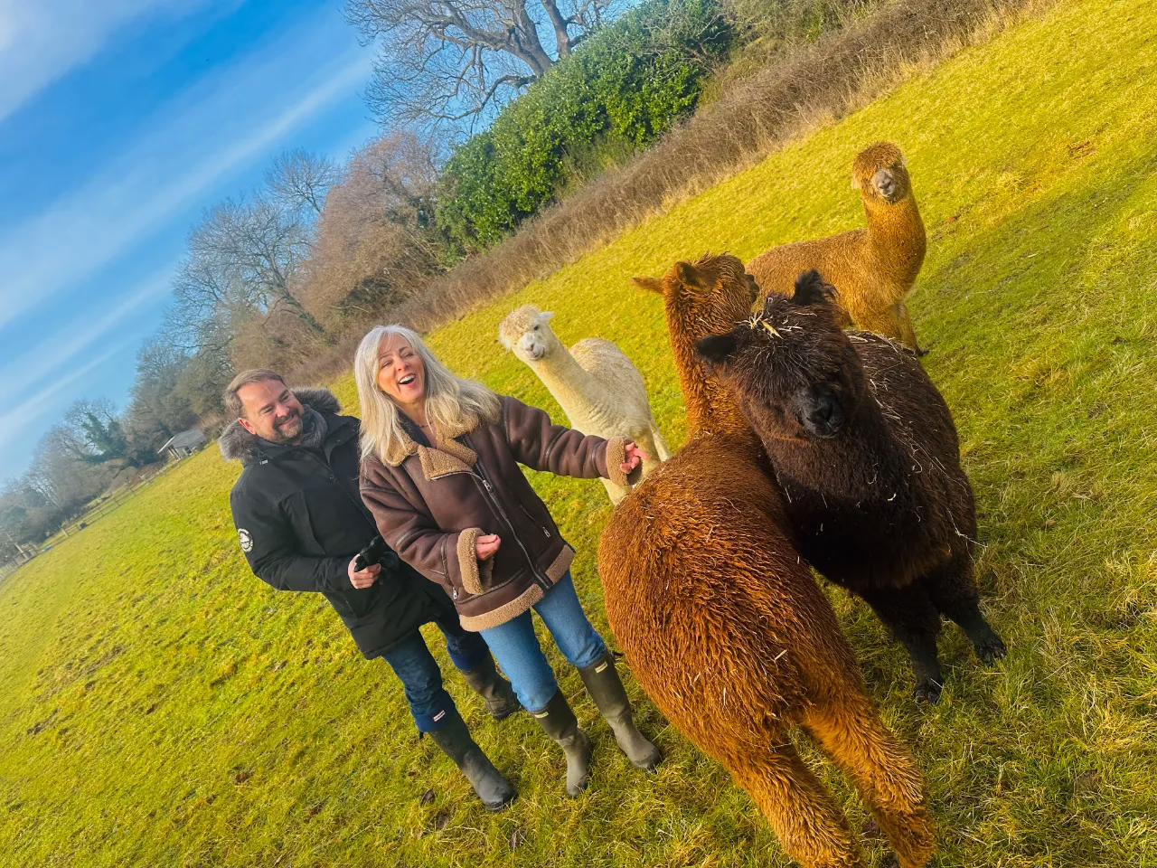 Please wear sturdy footwear and wear clothes that you don’t mind getting a little bit dirty. Our alpaca experience allows you to get up close and personal with our animals and they may rub up against you. Bring waterproof clothing if rain is forecast. Don’t forget to charge your phone or camera to take photos!