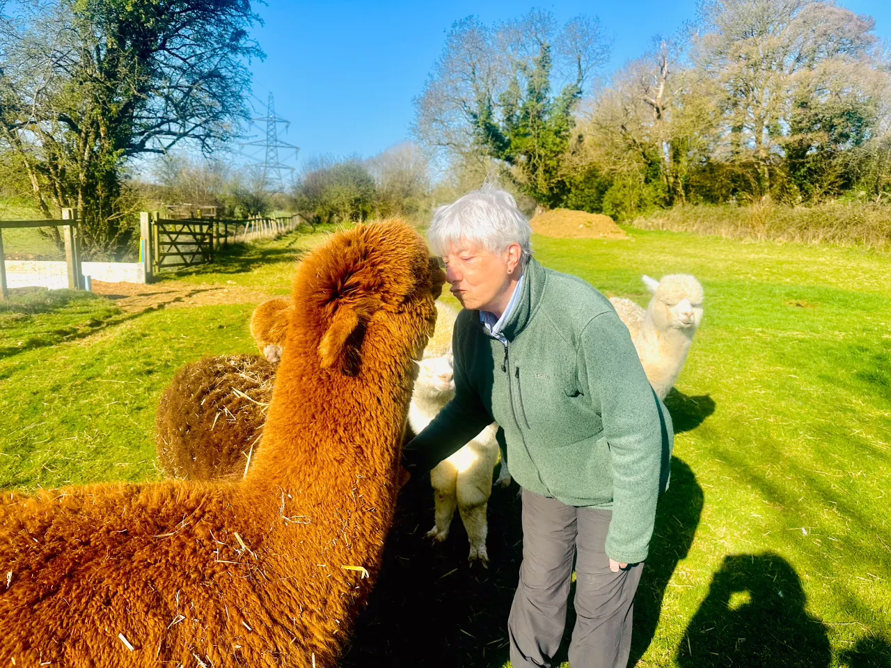 Alpacas greet others by touching noses, so they enjoy nose kissing when you meet them (especially Harry!)