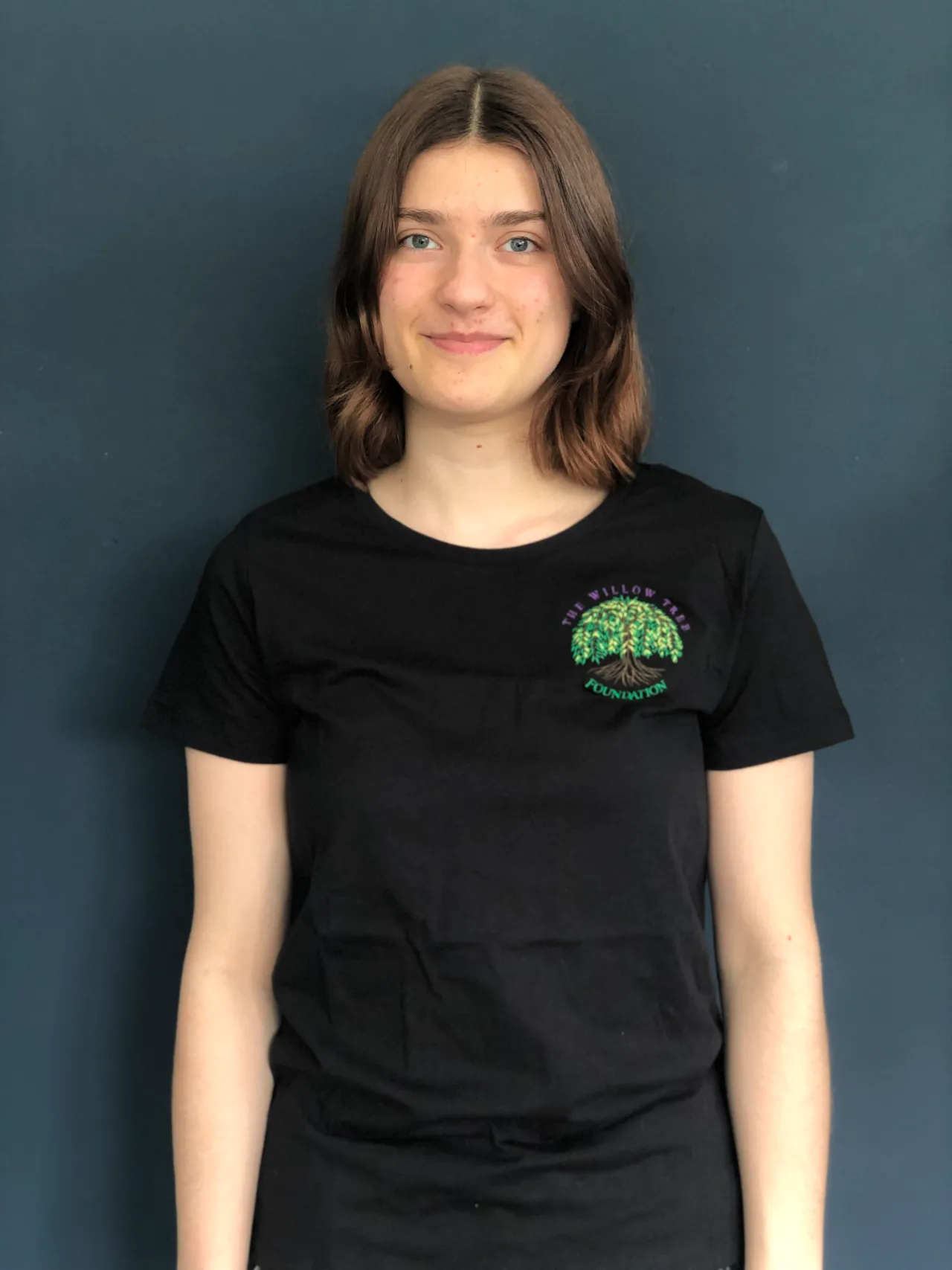These organic T-shirts come in 3 colours (Black, Grey and Navy blue) all have the Willow Tree Foundation logo printed on the front right.