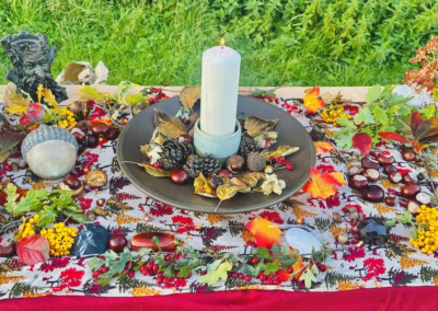 The Wheel Of The Year was first popularised in the mid-twentieth century and is made up of eight seasonal festivals (Sabbats) marking the solstices, equinoxes and midpoints between them. This gives us time as a community to meet up every six weeks to check in and refocus in an evening of contemplation, ritual and celebration.
